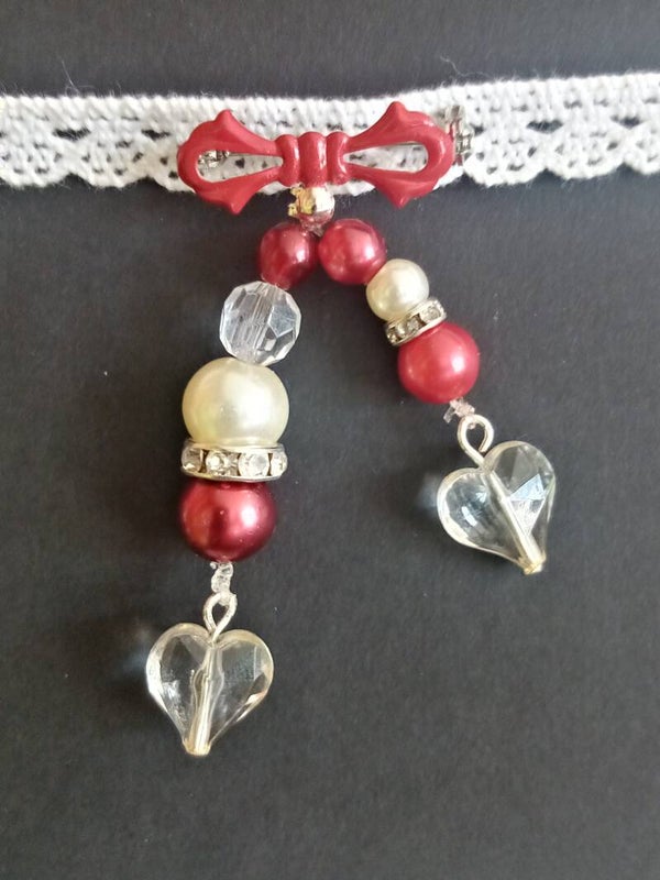 Parure boucles d'oreilles et broche assemblées et peintes à la main